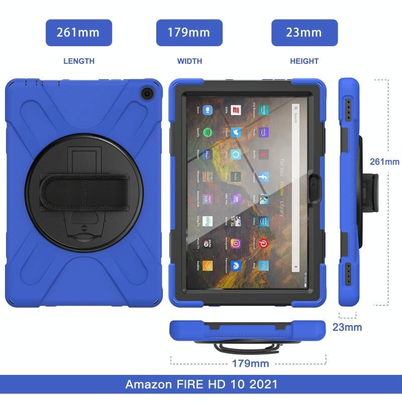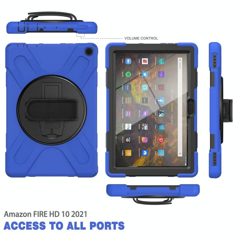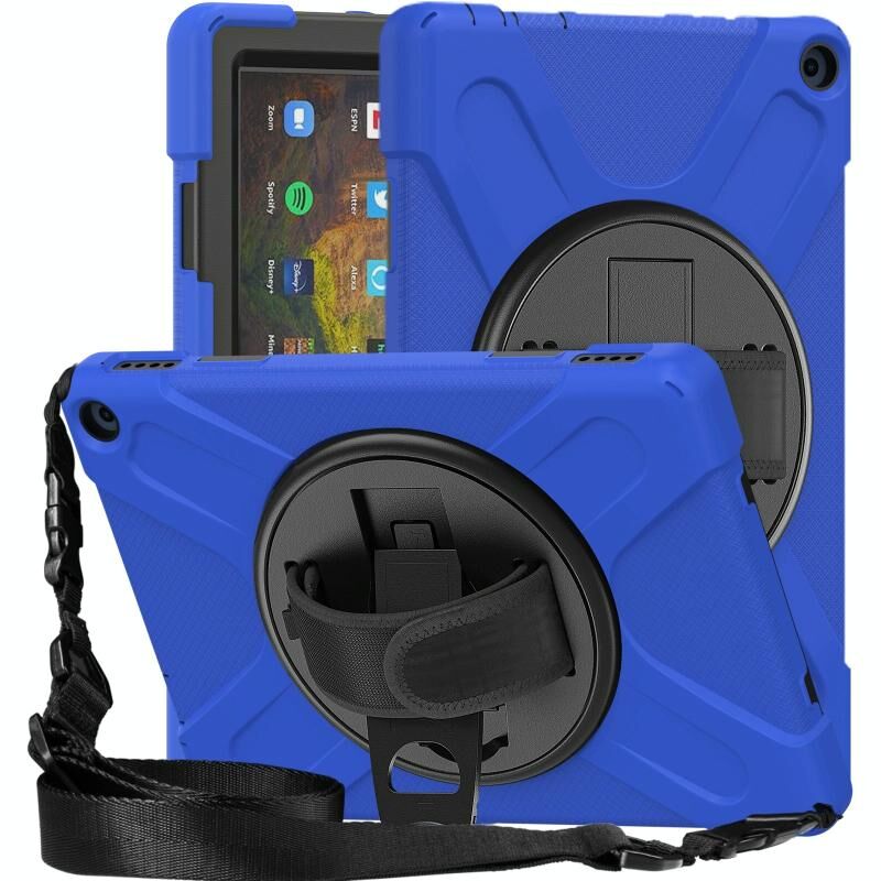 Για το Amazon Kindle Fire HD 10 2021 Προστατευτική θήκη σιλικόνης + PC με θήκη & λουράκι ώμου (μπλε)