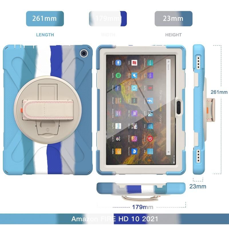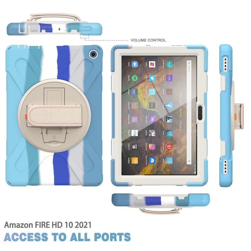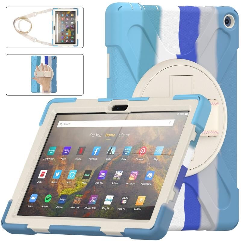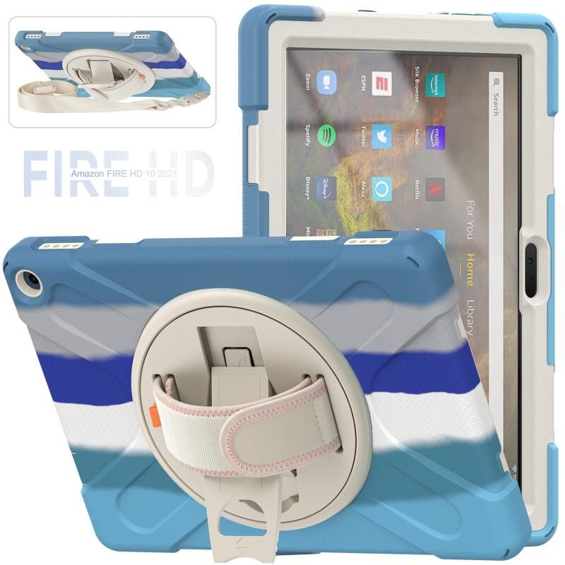 Για Amazon Kindle Fire HD 10 2021 σιλικόνη + PC Προστατευτική θήκη με θήκη & λουράκι ώμου (πολύχρωμο μπλε)