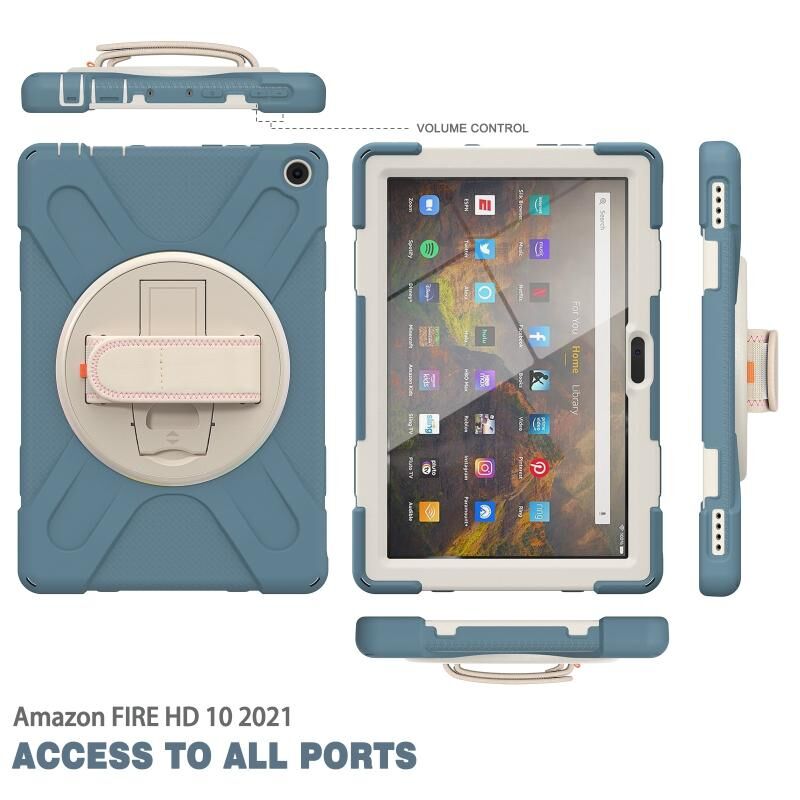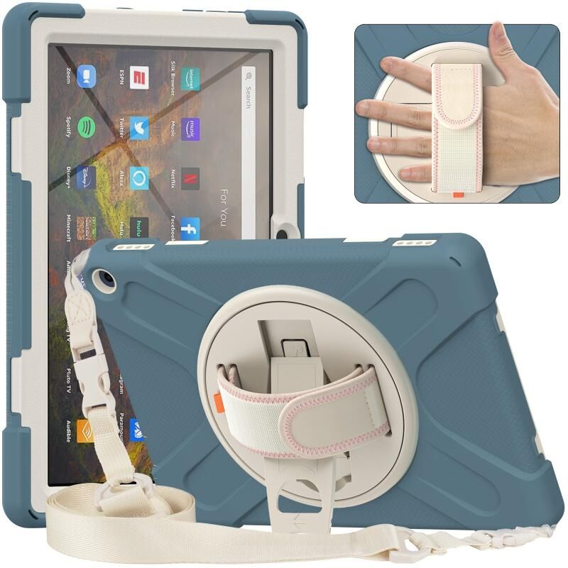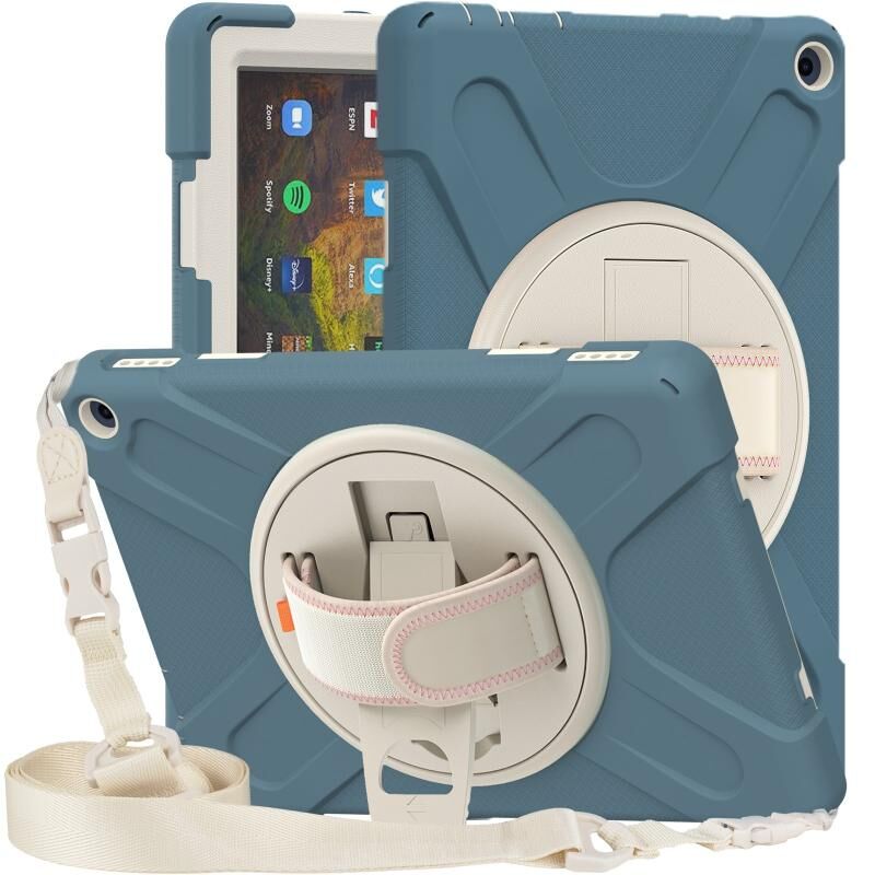 Για Amazon Kindle Fire HD 10 2021 σιλικόνη + PC Προστατευτική θήκη με θήκη & λουράκι ώμου (Cornflower Blue)