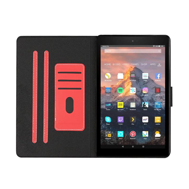For Amazon Kindle Fire HD 8 2016/2017 Solid Color Horizontal Flip Leather Case with Card Slots & Holder & Sleep / Wake-up Function(Red)