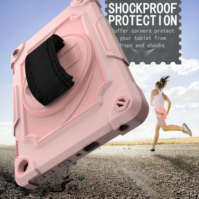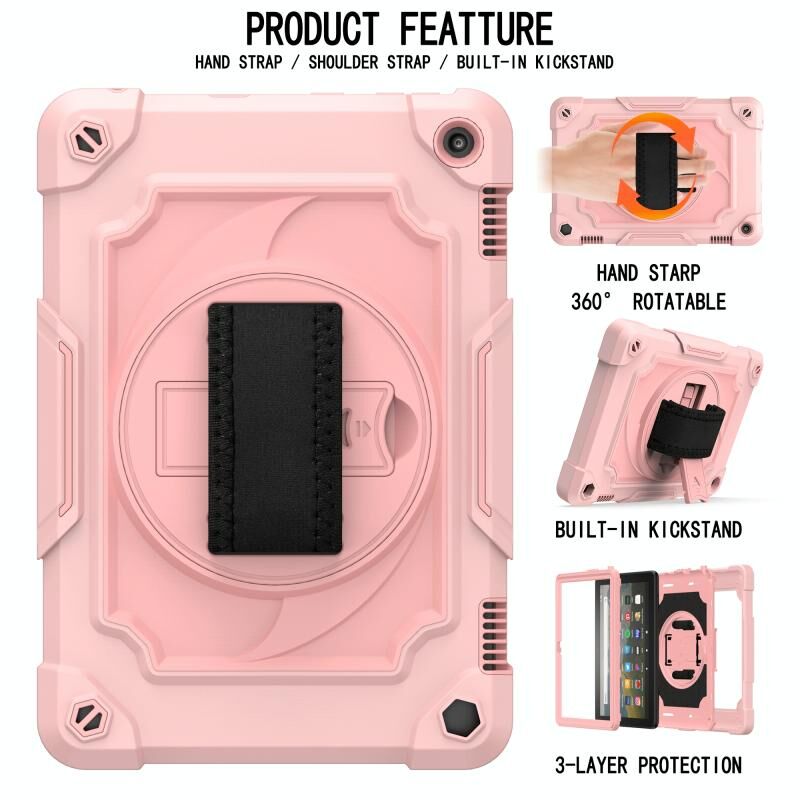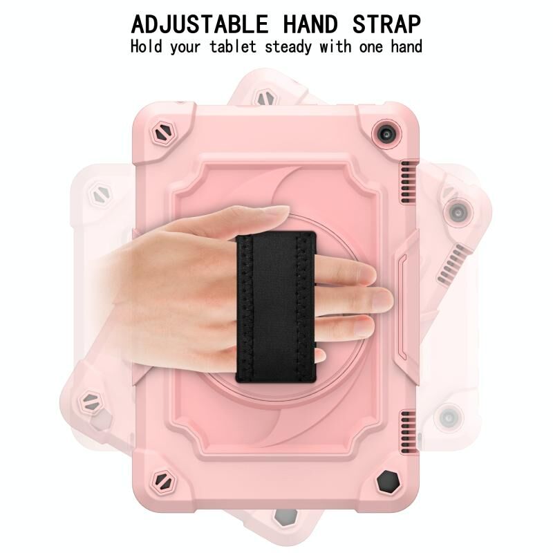 For Amazon Kindle Fire HD 8 2020 360 Degree Rotation Turntable Contrast Color Robot Shockproof Silicone + PC Protective Case with Holder(Rose Gold)
