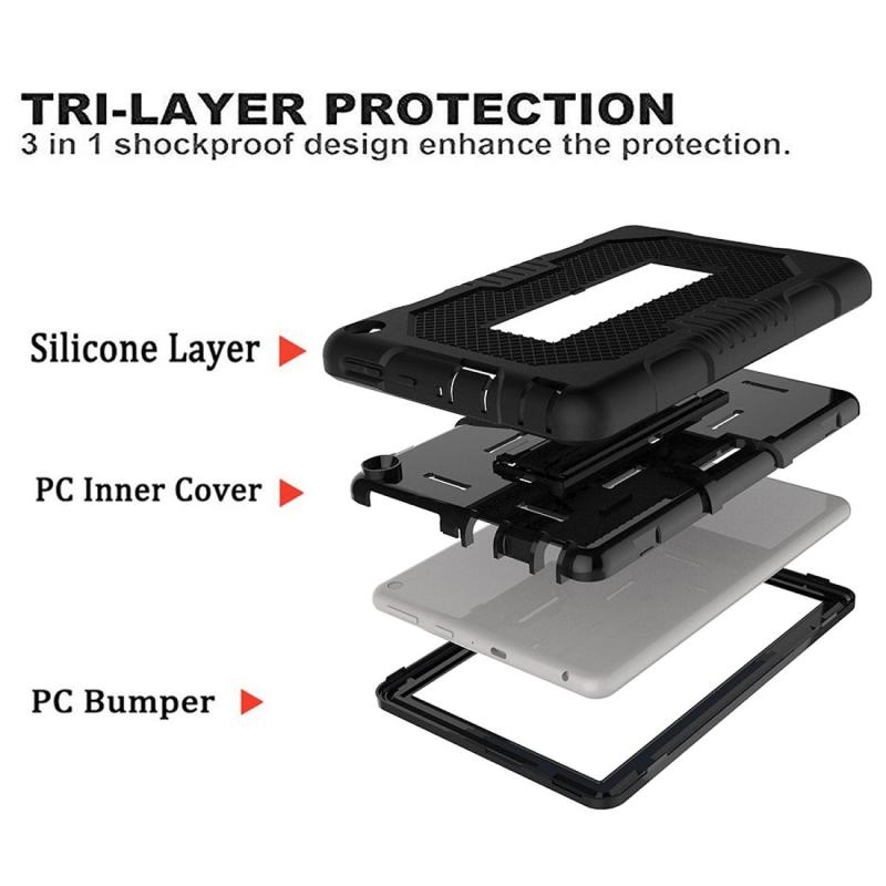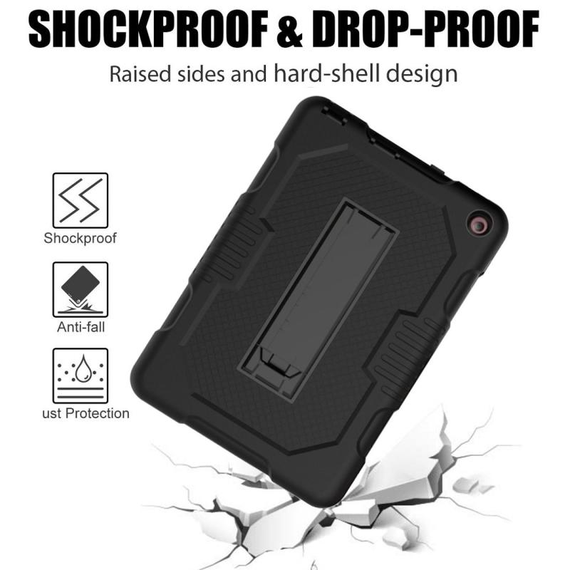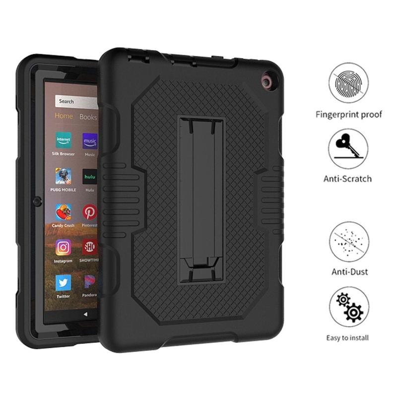 For Amazon Kindle Fire HD 8 (2020) B2 Contrast Color Silicone + PC Protective Case with Holder(Black+Black)