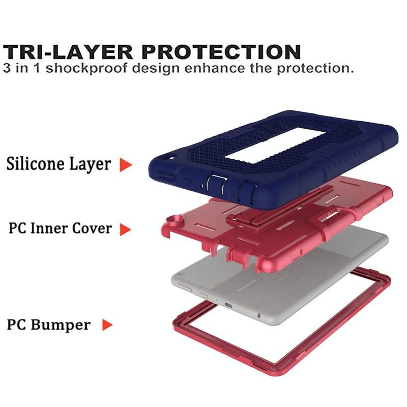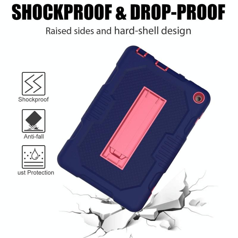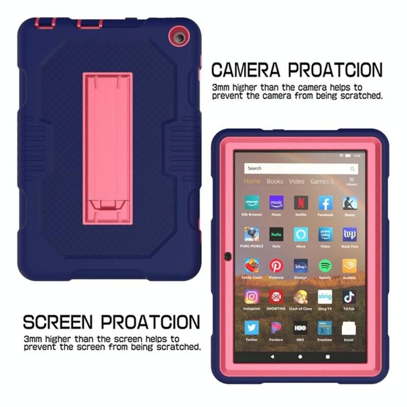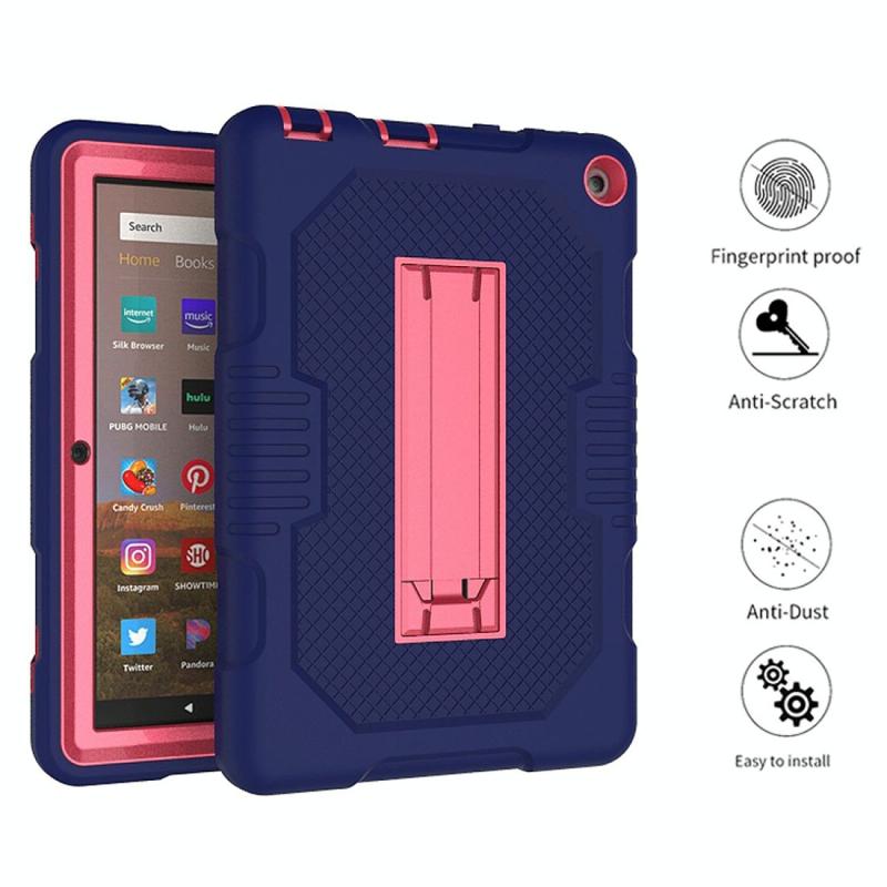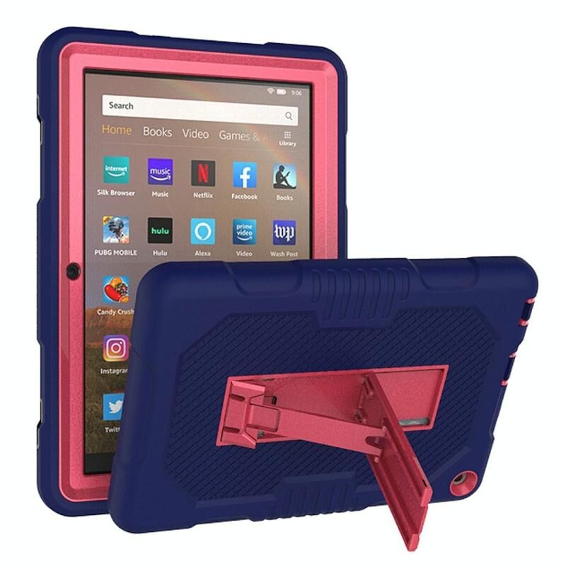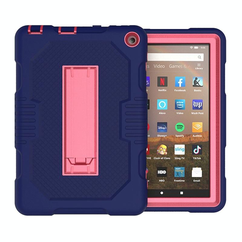 For Amazon Kindle Fire HD 8 (2020) B2Contrast Color Silicone + PC Protective Case with Holder(Navy Blue+Rose Red)