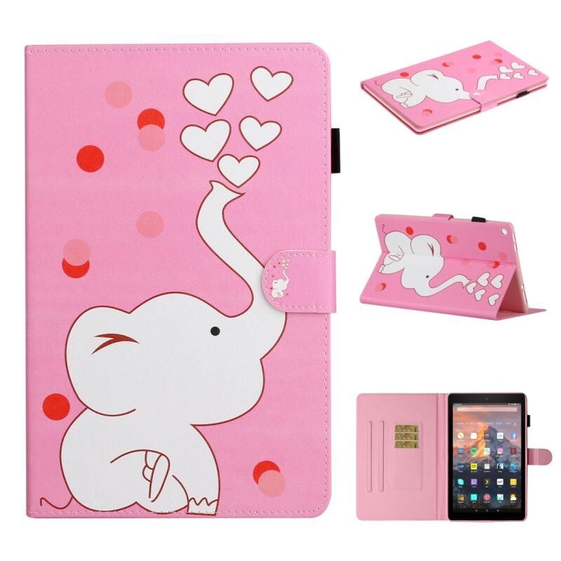 Θήκη για Amazon Kindle Fire HD 8 (2020) με πολύχρωμο σχέδιο, οριζόντια αναδιπλούμενη από δερματίνη PU με βάση στήριξης & θήκη για κάρτες & λειτουργία αφύπνισης/ύπνου (Αγαπητικός Ελέφαντας)