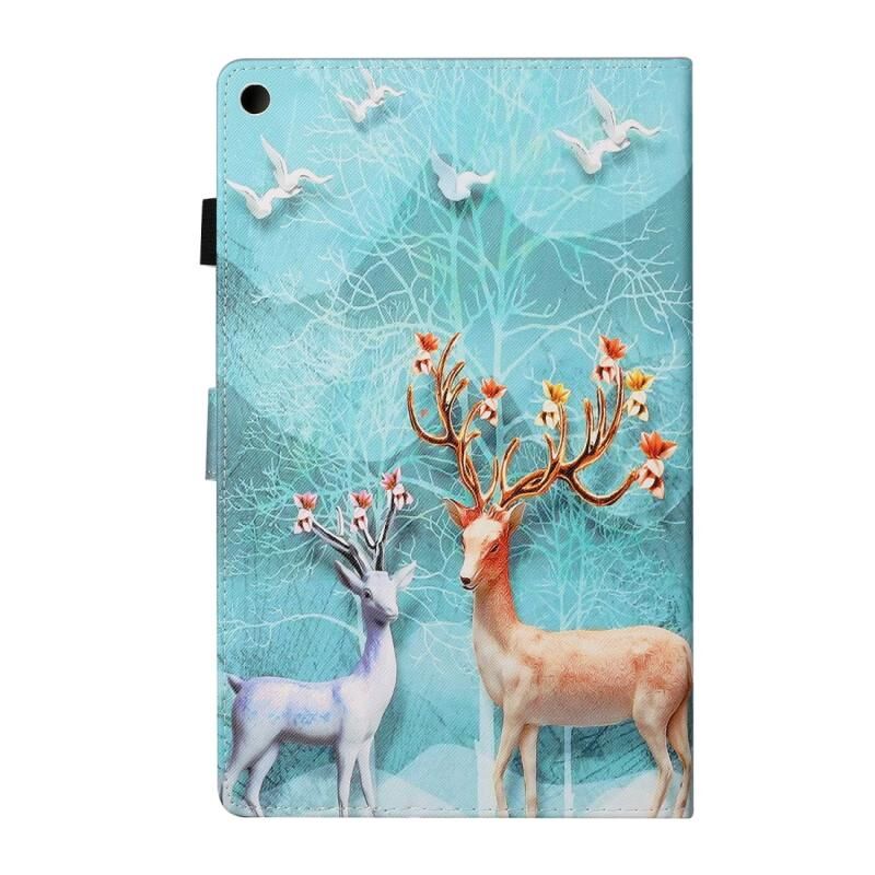 Θήκη για Amazon Kindle Fire HD 8 (2020) με πολύχρωμο σχέδιο, οριζόντια αναδιπλούμενη από δερματίνη PU με βάση στήριξης & θήκη για κάρτες & λειτουργία αφύπνισης/ύπνου (Ελάφι Σίκα).