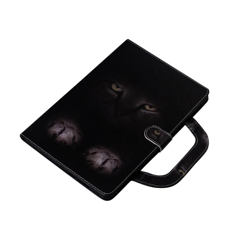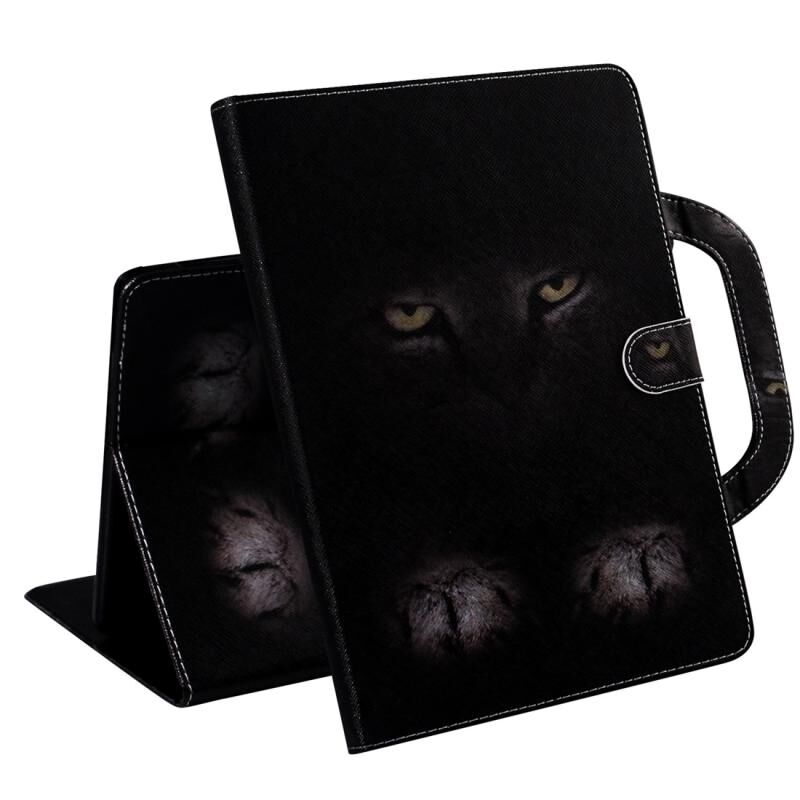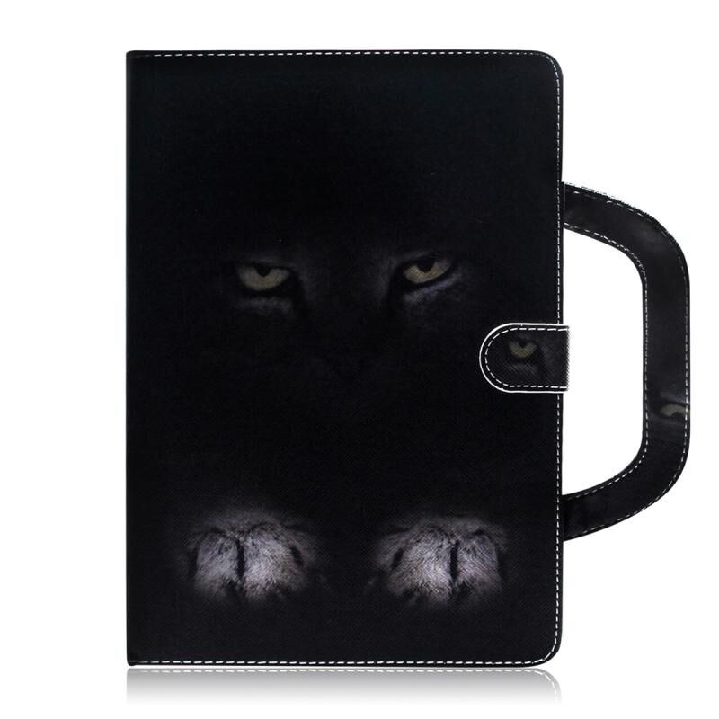 Θήκη δέρματος οριζόντιας αναδίπλωσης με 3D έγχρωμο σχέδιο για Amazon Kindle Fire HD 8 (2020) / HD 8 Plus (2020) με βάση στήριξης & θήκη καρτών & πορτοφόλι & λαβή (Μυστηριώδης Γάτα)