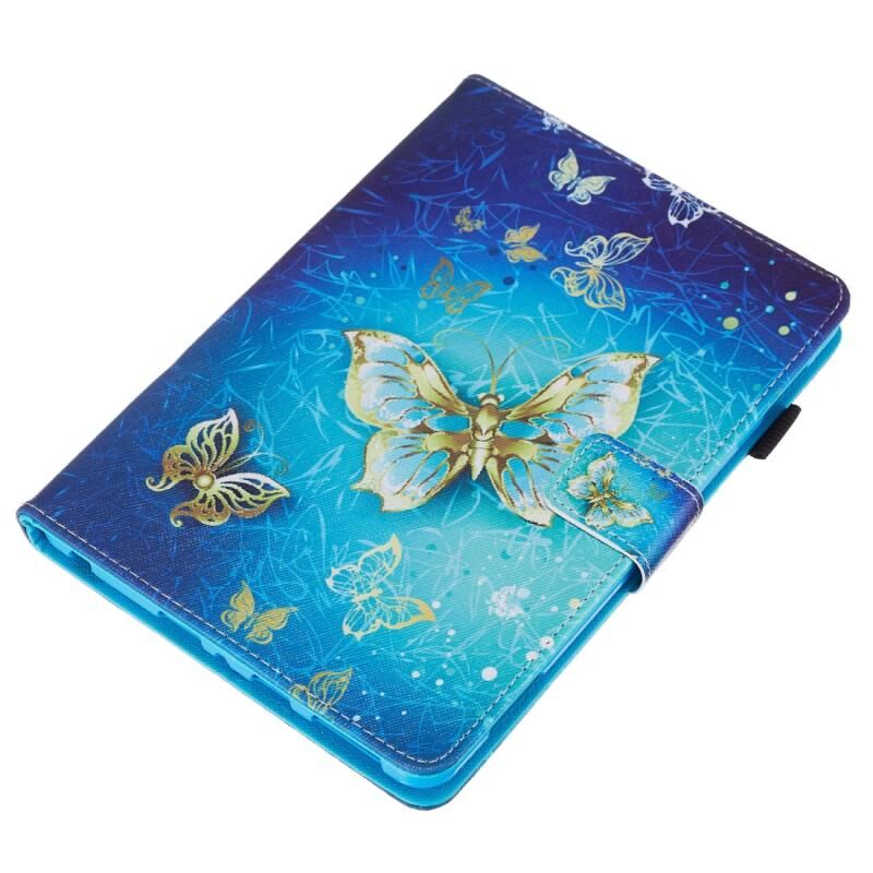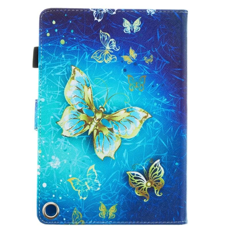 Θήκη από Δέρμα με Επίπεδη Βαφή για Amazon Kindle Fire HD 8 (2020) με Θήκη Καρτών & Πορτοφόλι & Στήριξη & Λειτουργία Αφύπνισης/Ύπνου (Χρυσή Πεταλούδα)
