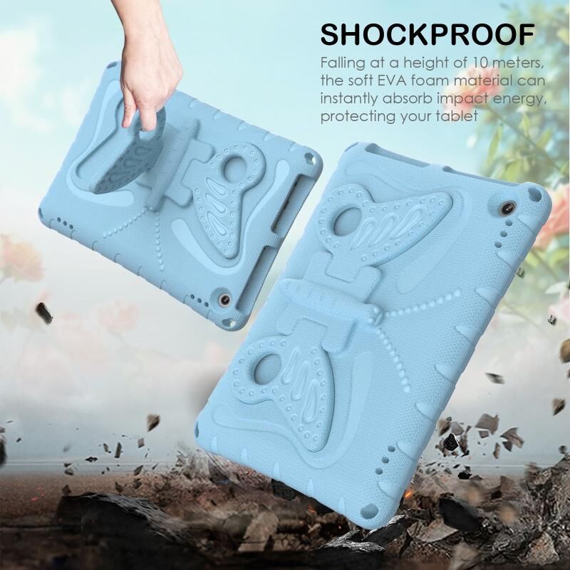 For Amazon Kindle Fire HD10 2021/2023 Butterfly Bracket EVA Shockproof Tablet Case(Light Blue)