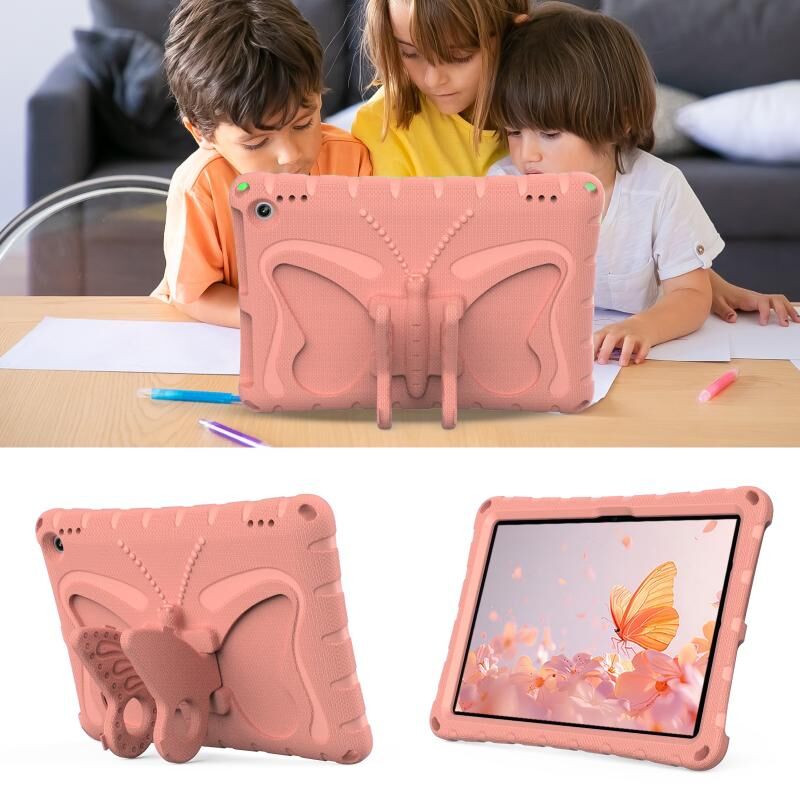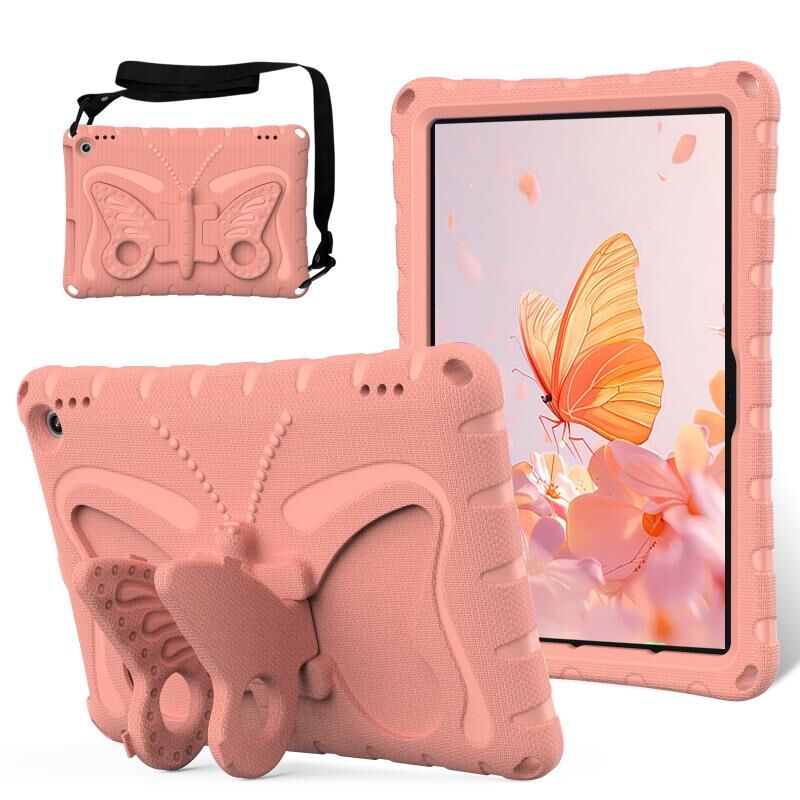 For Amazon Kindle Fire HD10 2021/2023 Butterfly Bracket EVA Shockproof Tablet Case(Pink Orange)