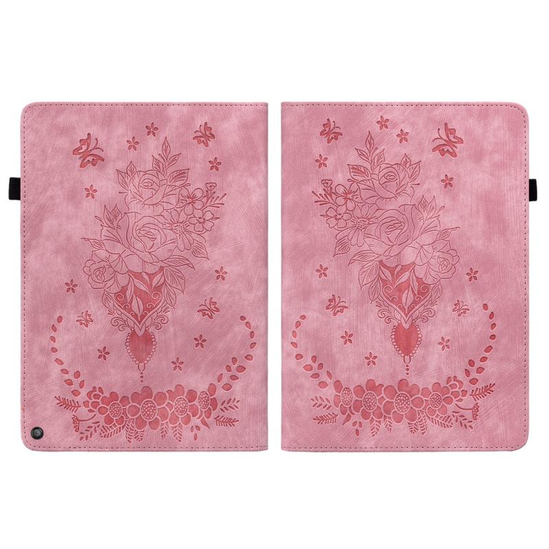 For Amazon Kindle Fire HD10 2021 Butterfly Rose Embossed Leather Smart Tablet Case(Pink)