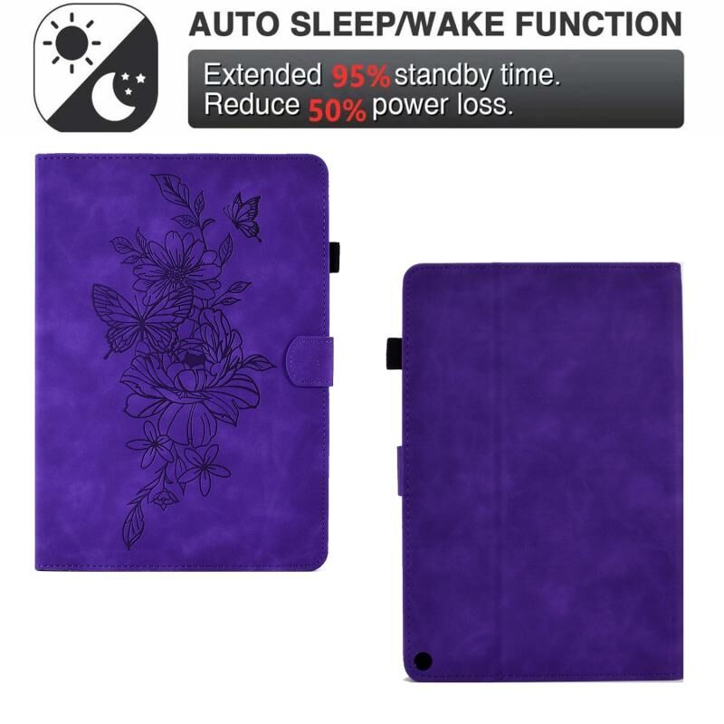 Θήκη Smart Tablet από Δέρμα με ανάγλυφο σχέδιο Πεονίας και Πεταλούδας για Amazon Kindle Fire HD10 2021 (Πράσινο)