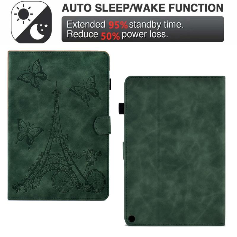 Θήκη Smart Tablet από Δέρμα με ανάγλυφο σχέδιο πύργου για Amazon Kindle Fire HD10 2021 (Χακί)