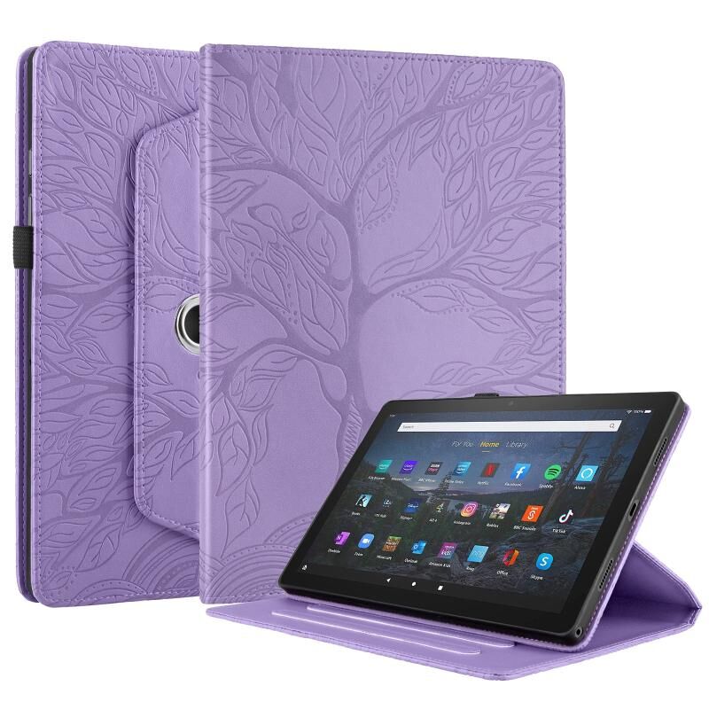 Για το Amazon Kindle Fire HD10 2021 Tree Life ανάγλυφη περιστροφή δερμάτινη θήκη tablet (μωβ)