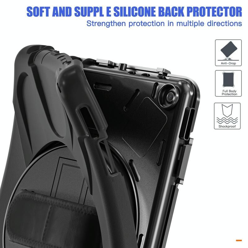 1. Προστασία: σκληρό πίσω κάλυμμα PC + μαλακό εξωτερικό κέλυφος σιλικόνης. Παρέχει προστατευτική θήκη για το tablet σας για την αποφυγή τυχαίων πτώσεων/χτυπημάτων/γρατζουνιών.