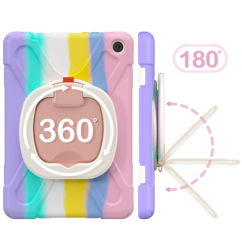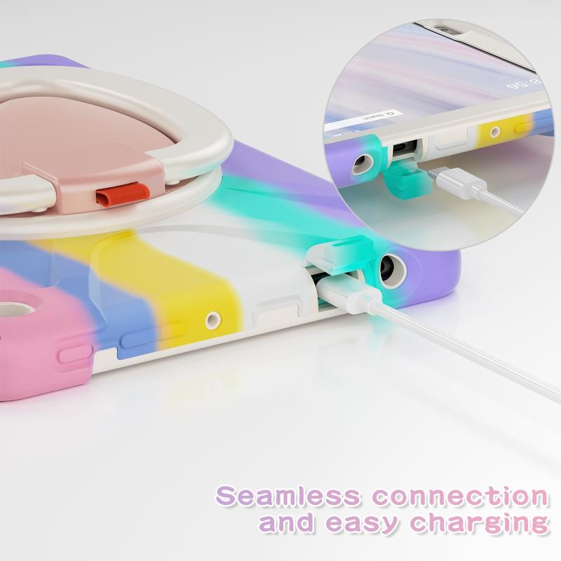 4. Hand And Shoulder Strap: The back turntable built-in a hand strap, when you put your hand into the strap, you can firmly grasp the center of gravity of your tablet.