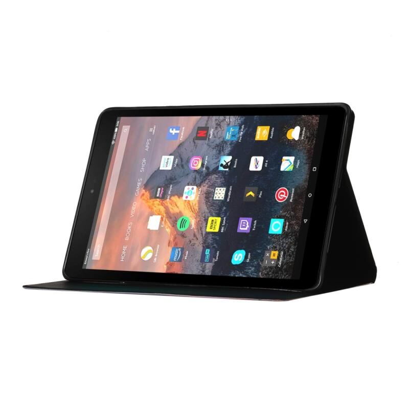 Θήκη δέρματος οριζόντιας αναδίπλωσης με σχέδιο πολύχρωμης ζωγραφικής για Amazon Kindle Fire HD7 (2019) με βάση στήριξης & θήκες καρτών (Γατολούλουδο σε φεγγαρόφωτο)