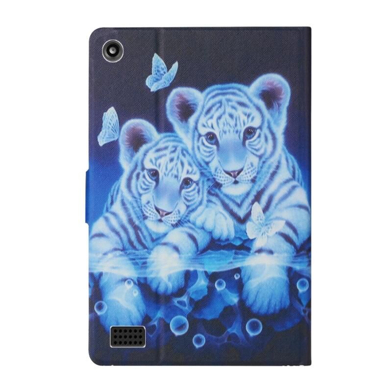 Θήκη δέρματος οριζόντιας αναδίπλωσης με σχέδιο πολύχρωμης ζωγραφικής για Amazon Kindle Fire HD7 (2019) με βάση στήριξης & θήκες καρτών (Τίγρης)