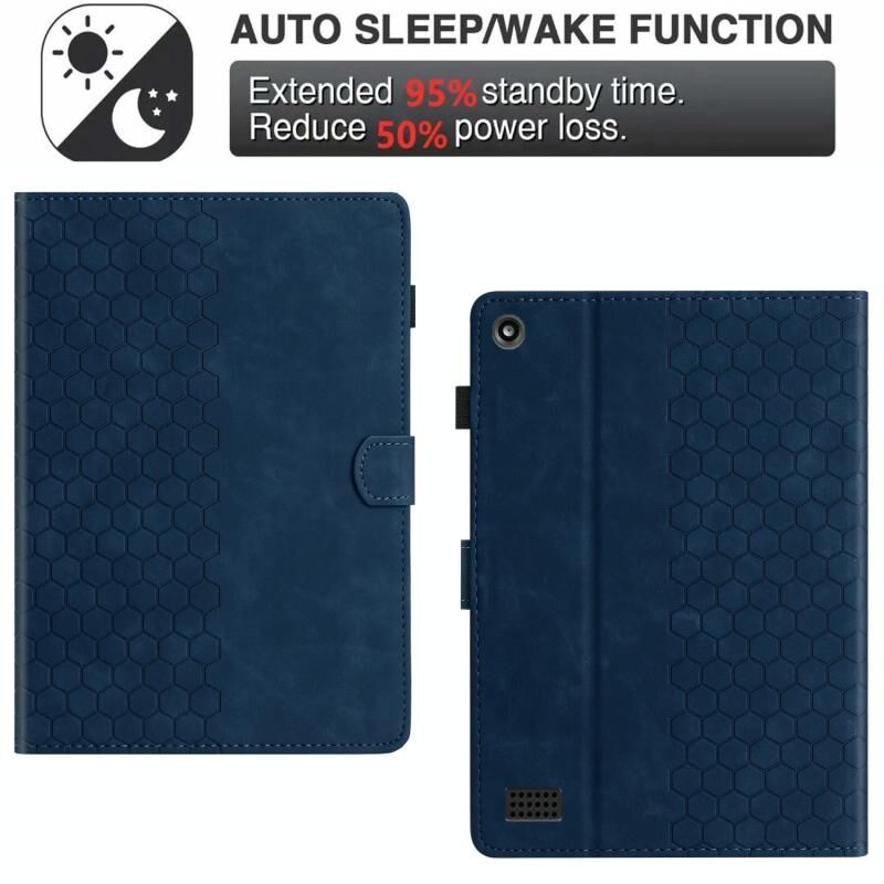 Για Amazon Kindle Fire HD8 2017 / 2018 Honeycomb ανάγλυφη δερμάτινη θήκη για έξυπνο tablet (μπλε)