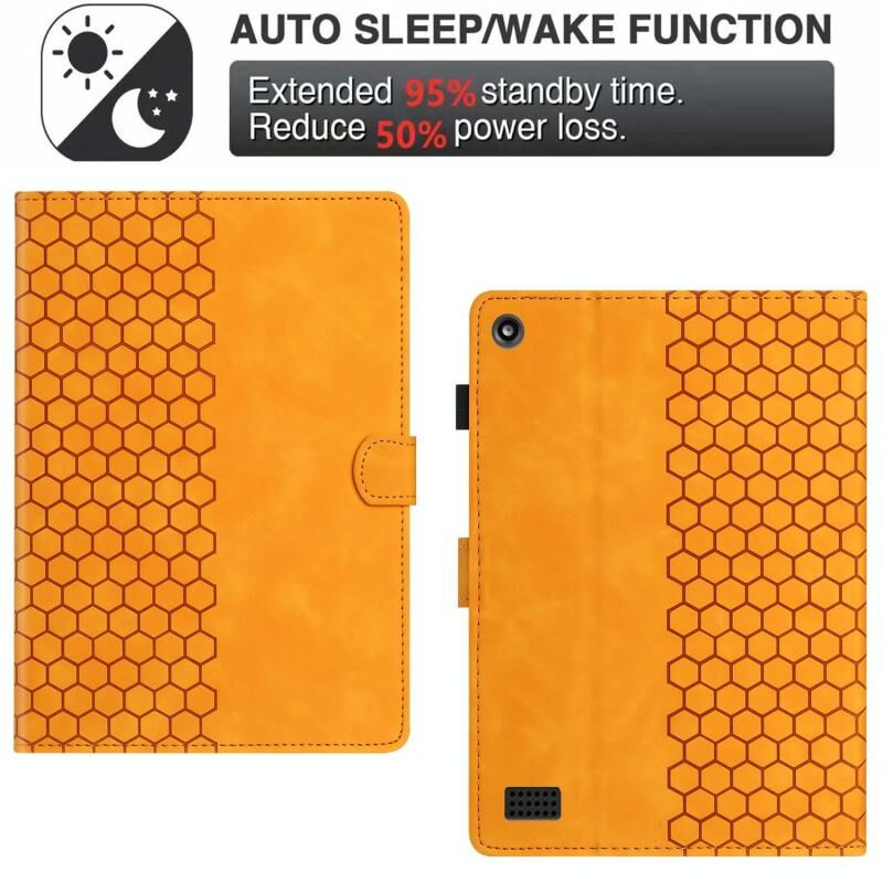 Για Amazon Kindle Fire HD8 2017 / 2018 Honeycomb ανάγλυφη δερμάτινη θήκη για έξυπνο tablet (κίτρινο)