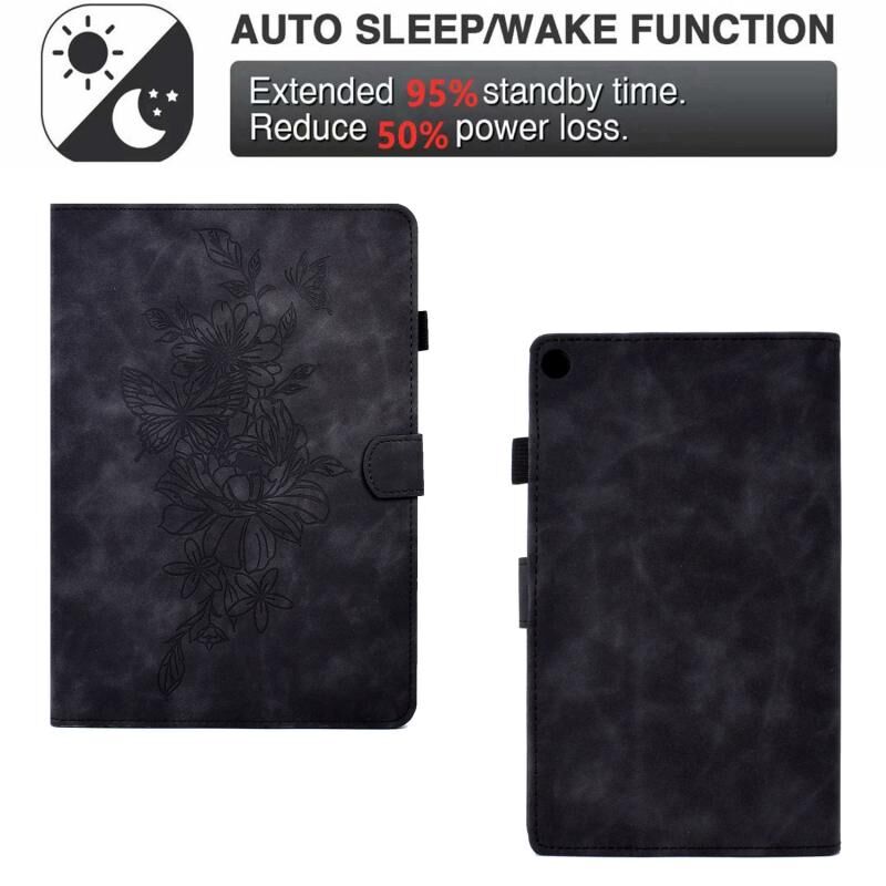 Για Amazon Kindle Fire HD8 2018/2017/2016 Θήκη Ταμπλέτας από Δέρμα με ανάγλυφο σχέδιο Πιονιών και Πεταλούδας, με Αυτόματη Αφύπνιση/Ύπνο (Καφέ)