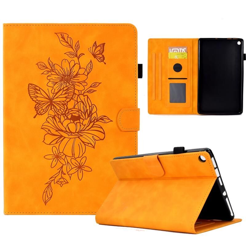 Για Amazon Kindle Fire HD8 2018/2017/2016 Θήκη Ταμπλέτας από Δέρμα με ανάγλυφο σχέδιο Πιονιών και Πεταλούδας, με Αυτόματη Αφύπνιση/Ύπνο (Καφέ)