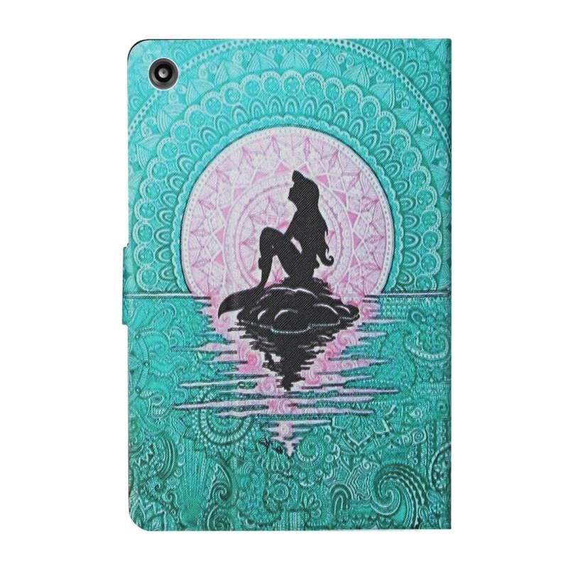 Θήκη δέρματος οριζόντιας αναδίπλωσης με σχέδιο πολύχρωμης ζωγραφικής για Amazon Kindle Fire HD8 (2020) με βάση στήριξης & υποδοχές καρτών & λειτουργία αφύπνισης/ύπνου (Γοργόνα)