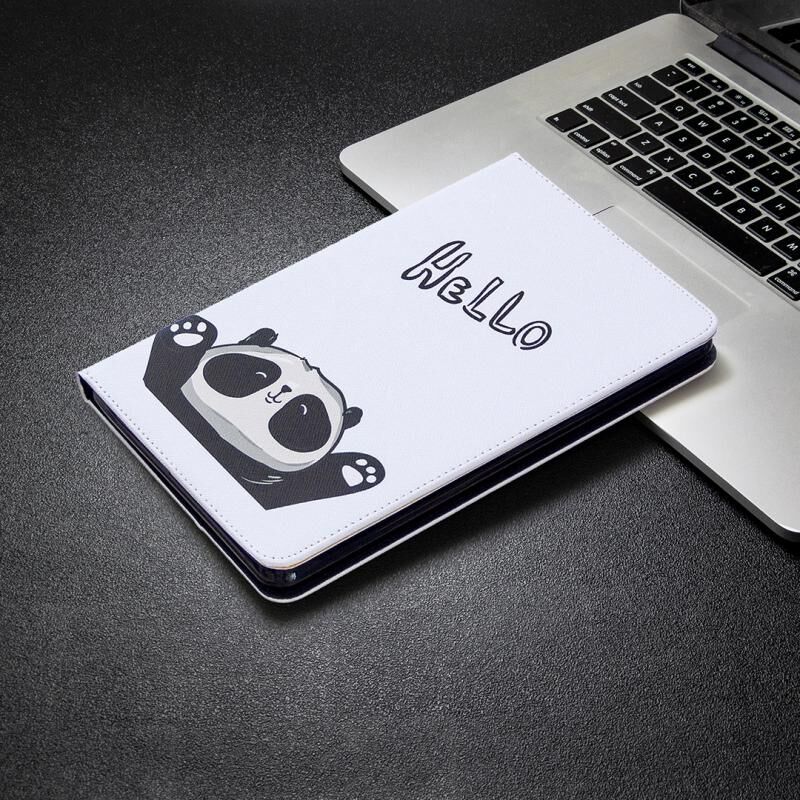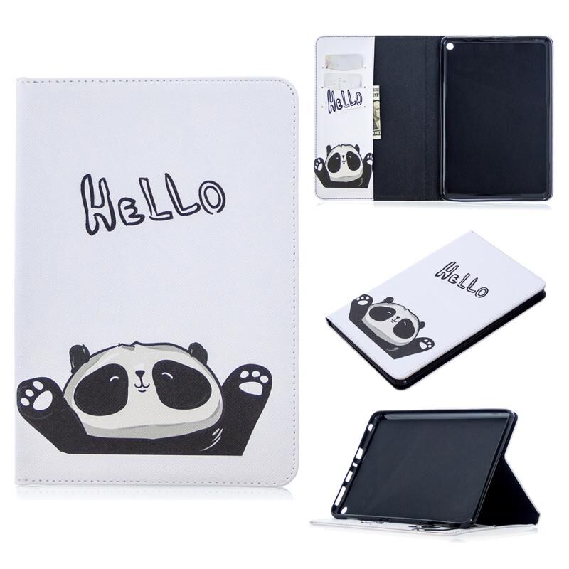 Θήκη δέρματος οριζόντιας αναδίπλωσης με σχέδιο πολύχρωμης ζωγραφικής για Amazon Kindle Fire HD8 (2020) με βάση στήριξης & υποδοχές καρτών & πορτοφόλι (Hello Panda)
