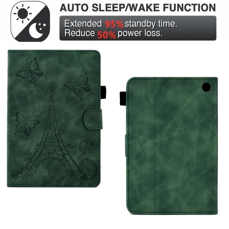 Για Amazon Kindle Fire HD8 2022/2020 Tower ανάγλυφη δερμάτινη θήκη για έξυπνο tablet (πράσινο)