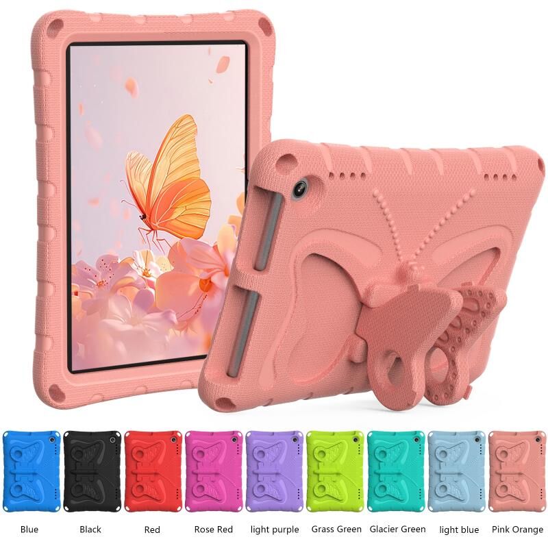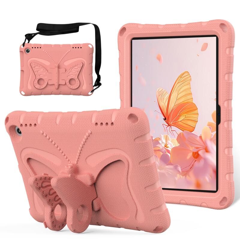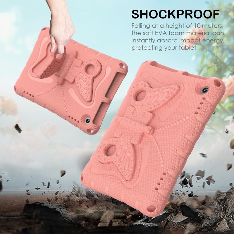 For Amazon Kindle Fire HD8 /8 Plus 2020/2022 Butterfly Bracket EVA Shockproof Tablet Case(Pink Orange)