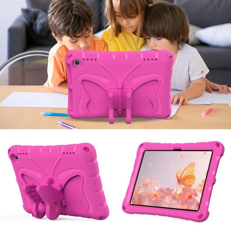 For Amazon Kindle Fire HD8 /8 Plus 2020/2022 Butterfly Bracket EVA Shockproof Tablet Case(Rose Red)