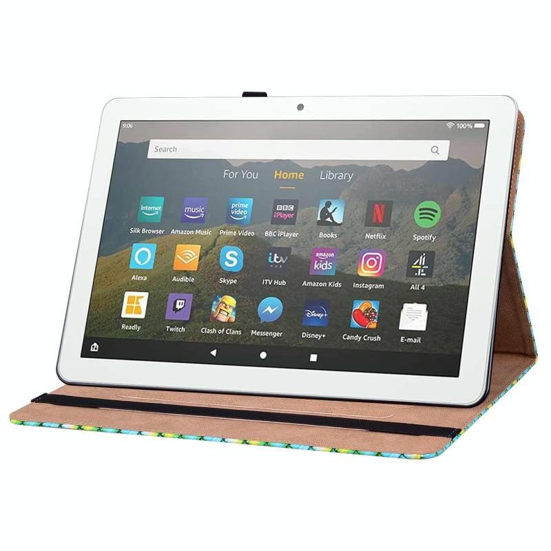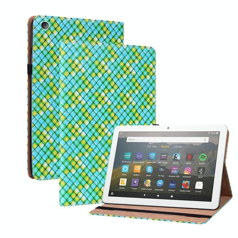 Θήκη ταμπλέτας από δέρμα με υφαντή υφή για Amazon Kindle Fire HD8 (Πράσινο) με βάση στήριξης.