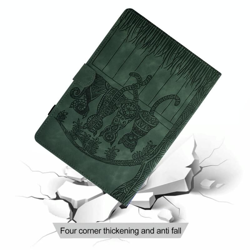 Θήκη Smart Tablet από Δέρμα με ανάγλυφα σχέδια Γάτας για Amazon Kindle Fire HD8 Plus 2022 (Πράσινο)
