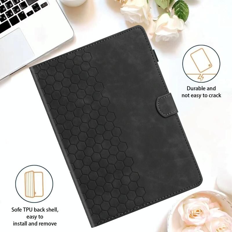 Για Amazon Kindle Fire Max 11 Honeycomb ανάγλυφη δερμάτινη θήκη για έξυπνο tablet (μαύρο)