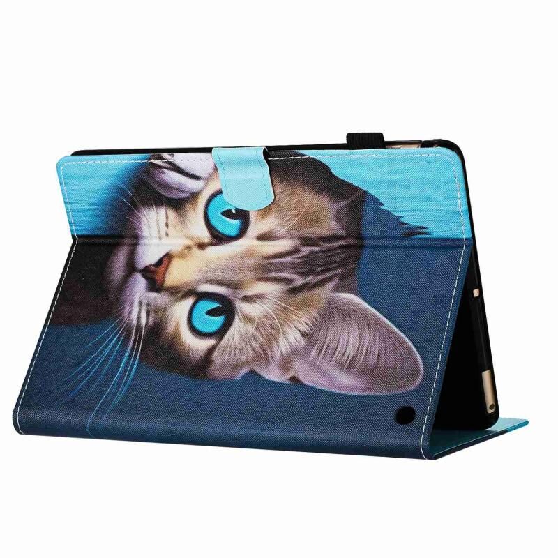 Θήκη Ταμπλέτας από Δέρμα με Έξυπνη Στήριξη και Ραφές με Σχέδιο Ζωγραφικής για Amazon Kindle Fire Max 11 (Μπλε Γάτα)