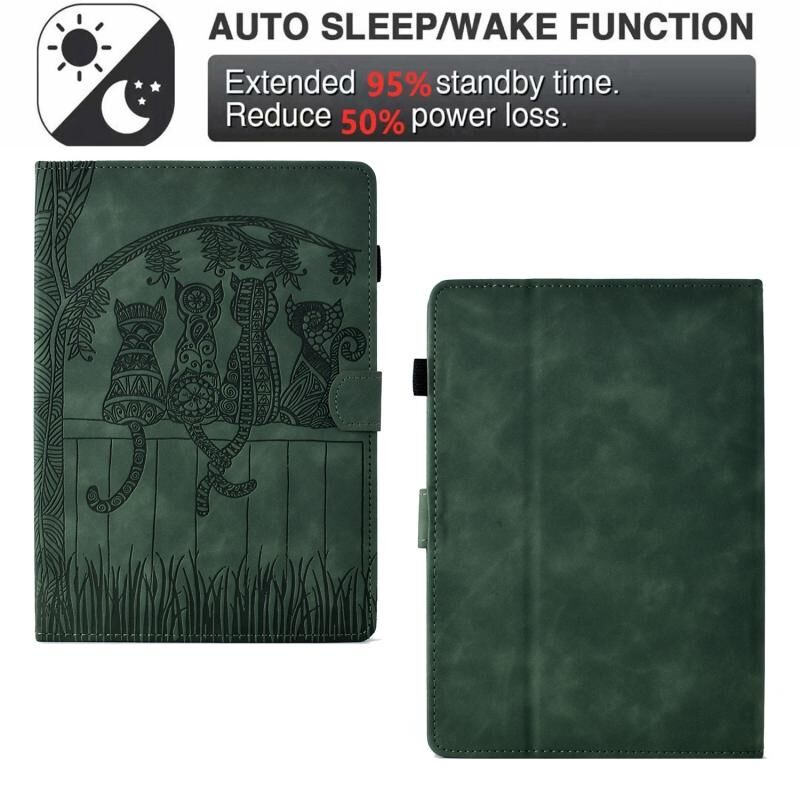 Θήκη Smart Tablet από Δέρμα με ανάγλυφα σχέδια Γάτας για Amazon Kindle Lite 2022 (Πράσινο)