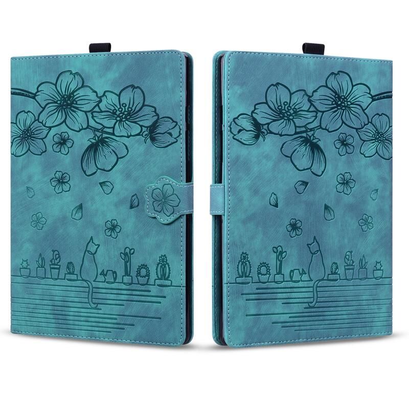 For Amazon Kindle Paperwhite 12th 2024 Cartoon Sakura Cat Embossed Leather Tablet Case(Green)