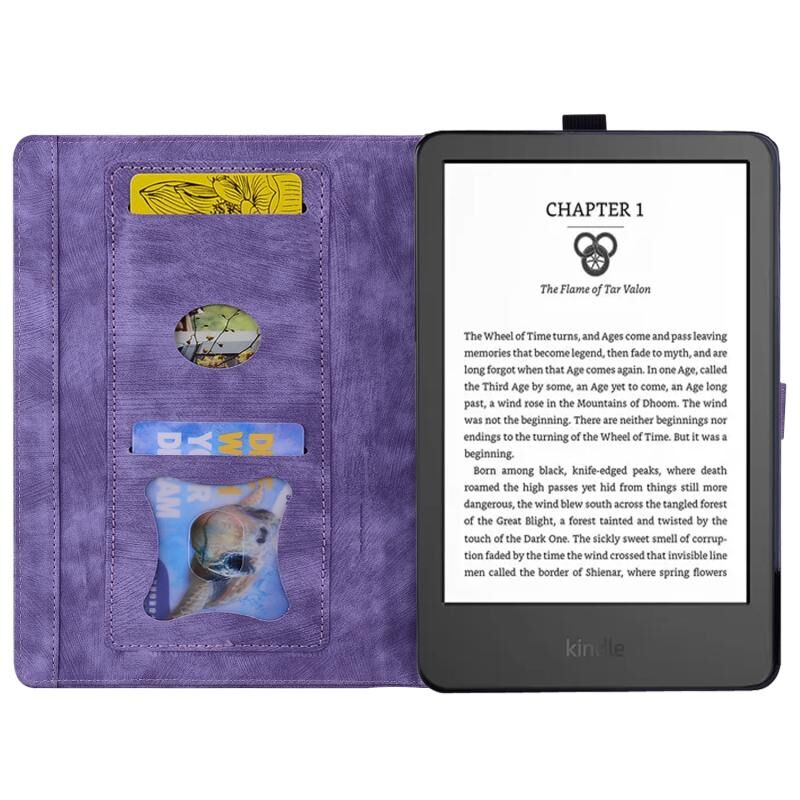 For Amazon Kindle Paperwhite 12th 2024 Cartoon Sakura Cat Embossed Leather Tablet Case(Purple)