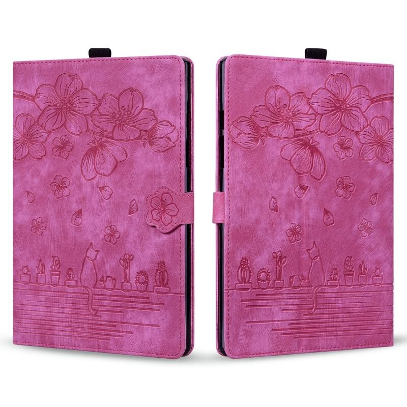 For Amazon Kindle Paperwhite 12th 2024 Cartoon Sakura Cat Embossed Leather Tablet Case(Rose Red)