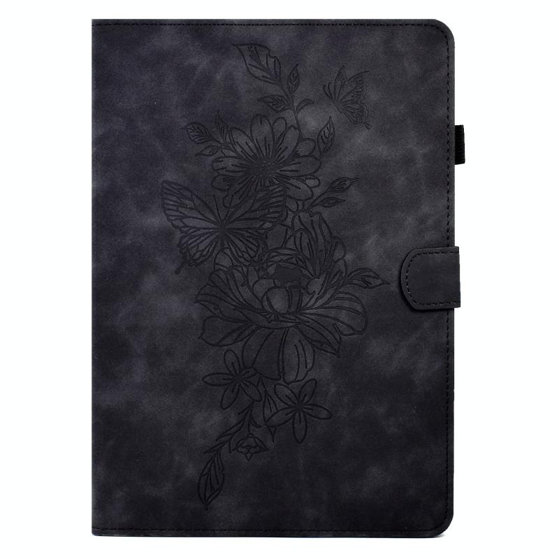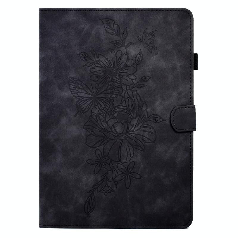 For Amazon Kindle Paperwhite 12th 2024 Peony Butterfly Embossed Leather Smart Tablet Case(Black)