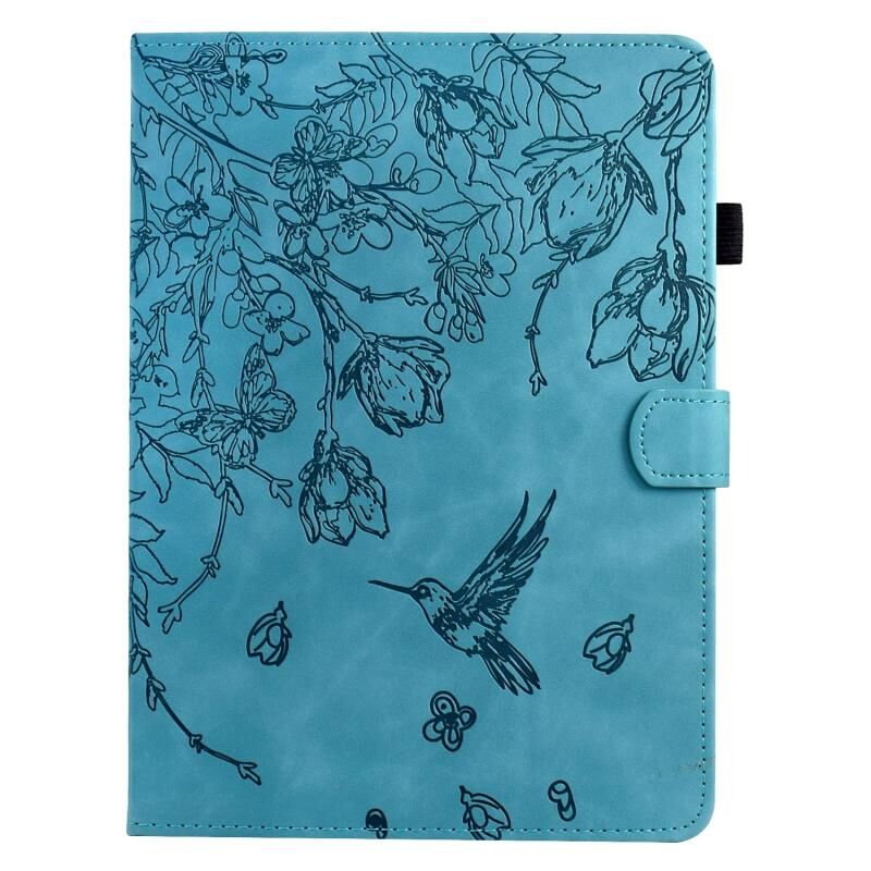 For Amazon Kindle Paperwhite 12th Gen 2024 Flowers and Bird Embossed Smart Leather Tablet Case(Light Blue)
