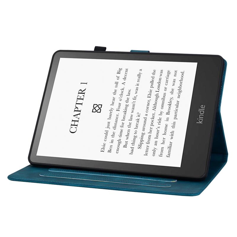 For Amazon Kindle Paperwhite 12th Gen 2024 Lily Embossed Leather Smart Tablet Case(Dark Blue)