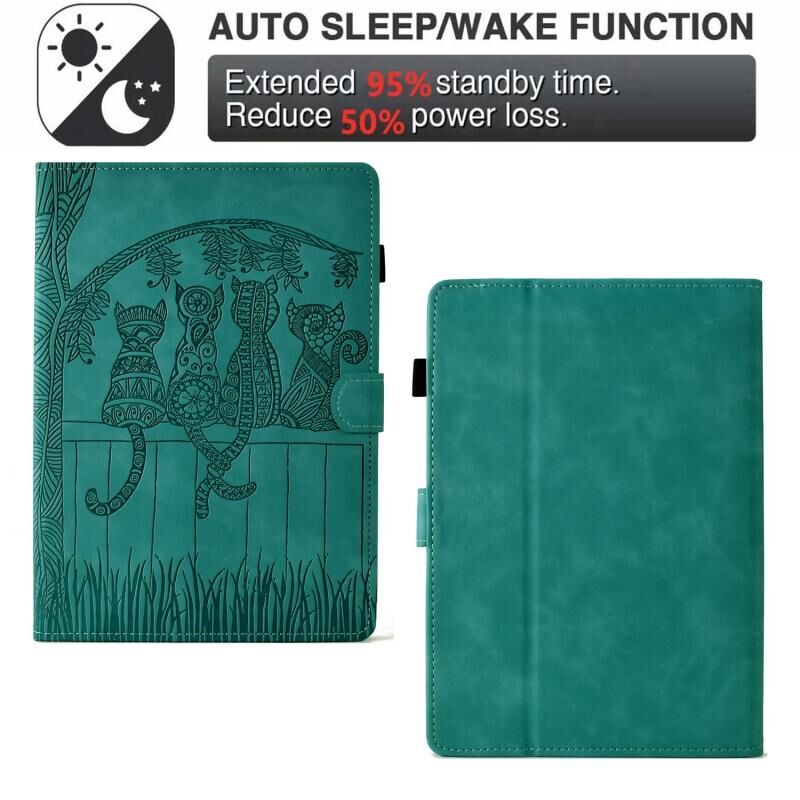 Θήκη Smart Tablet από Δέρμα με ανάγλυφα σχέδια Γάτας για Amazon Kindle Paperwhite 2021 (Πράσινο)