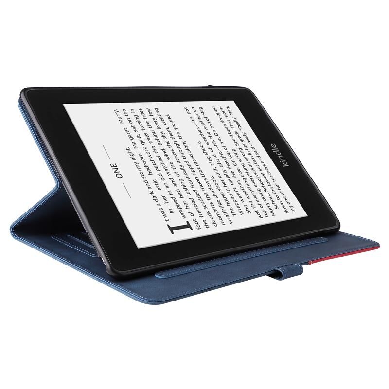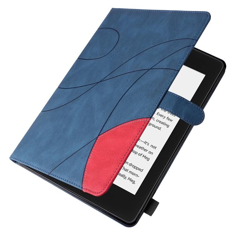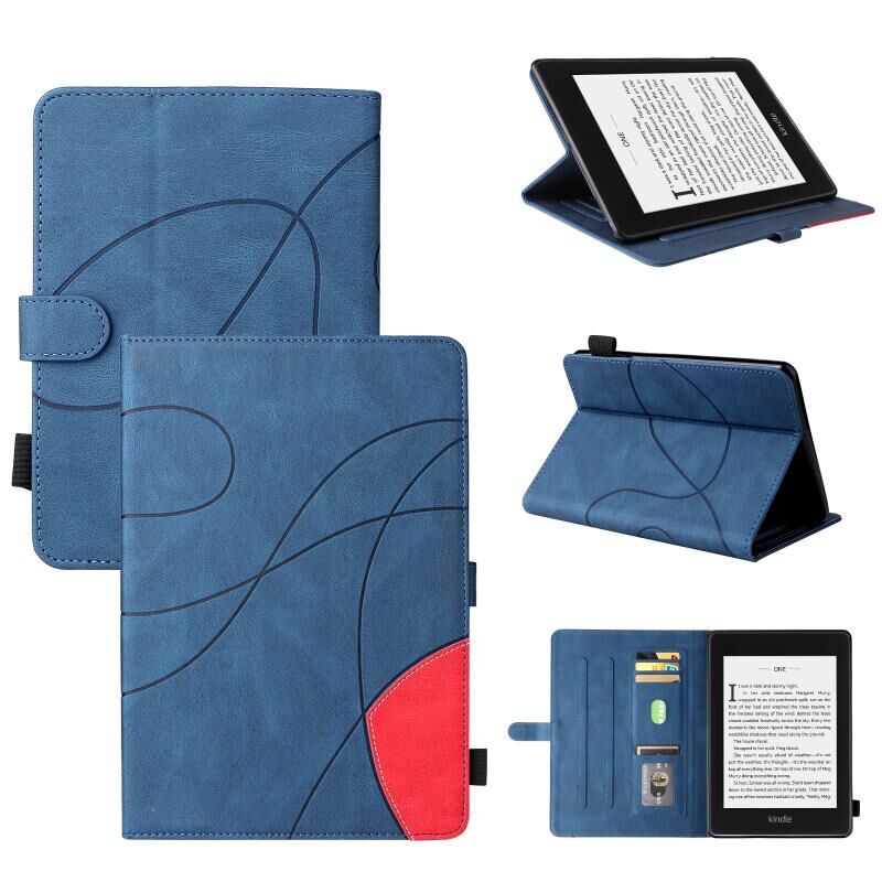 Για Amazon Kindle Paperwhite 4 / 3 / 2 / 1 Διπλό χρώμα Splicing οριζόντια Flip PU δέρμα υπόθεση με θήκη & υποδοχές καρτών & Sleep / λειτουργία αφύπνισης (μπλε)