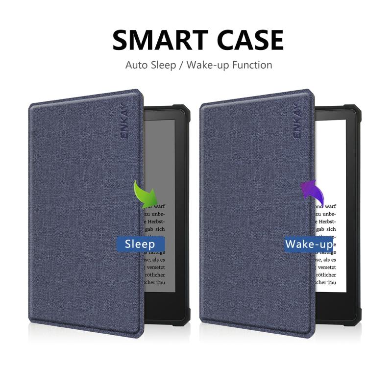 For Amazon Kindle Paperwhite 5 2021 ENKAY Solid Color Denim Texture Horizontal Flip Leather Tablet Case with Sleep / Wake-up Function(Dark Blue) (ENKAY)