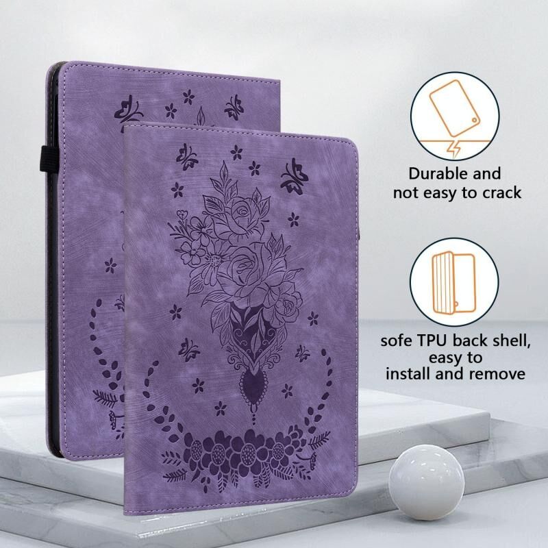 Θήκη ταμπλέτας από δέρμα με ανάγλυφο σχέδιο πεταλούδας και τριαντάφυλλου για Amazon Kindle Paperwhite 5 2024 (Κόκκινο του Ρόδου)