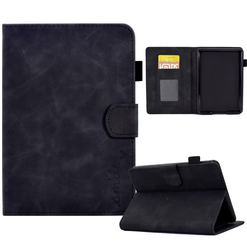 Για Amazon Kindle Paperwhite 5 ανάγλυφο χαμόγελο Flip Tablet δερμάτινη θήκη (μαύρο)