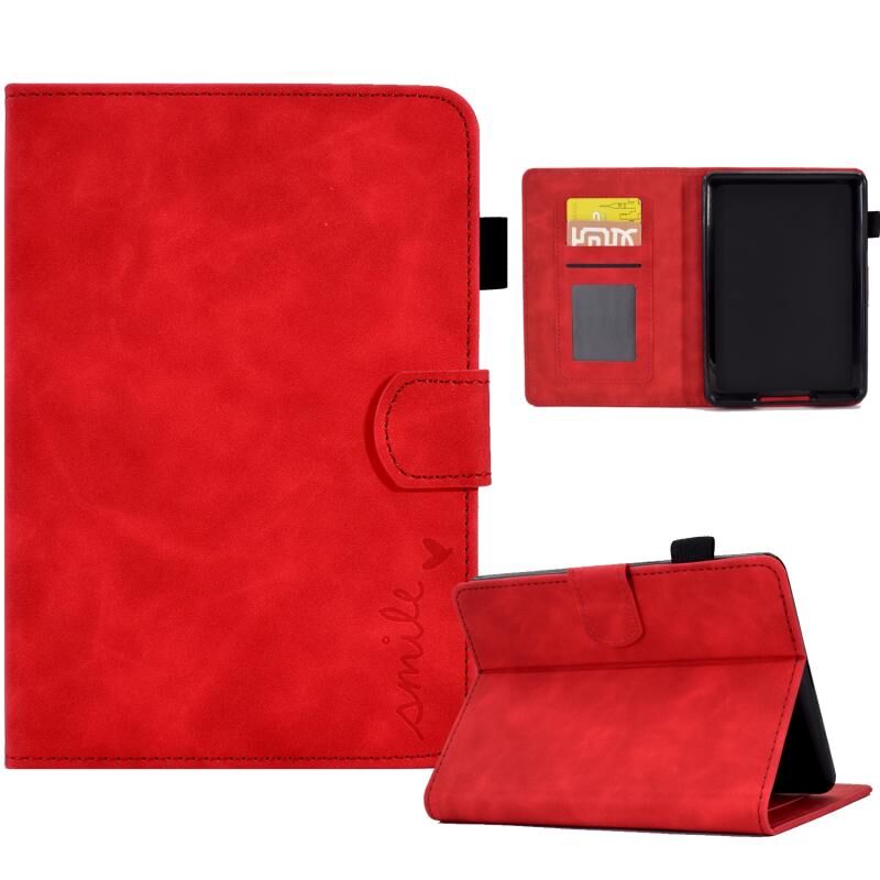 Για Amazon Kindle Paperwhite 5 ανάγλυφο χαμόγελο Flip Tablet δερμάτινη θήκη (κόκκινο)