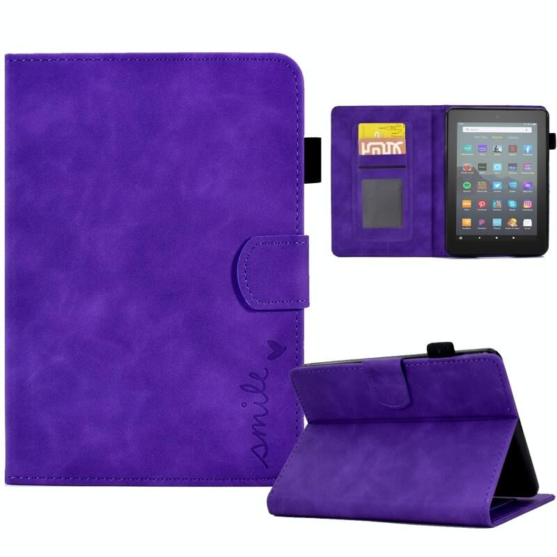 Για Amazon Kindle έκδοση νέων 2022 ανάγλυφο χαμόγελο Flip Tablet δερμάτινη έξυπνη θήκη (μωβ)
