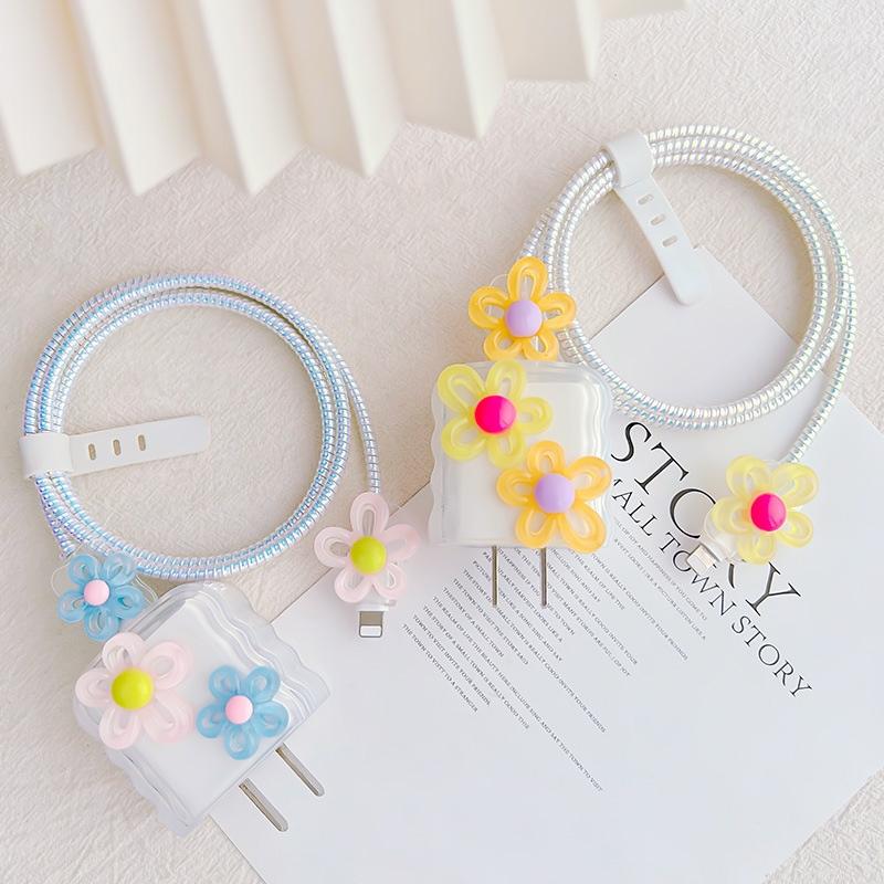 For Apple 18W/20W Flower Shape Charger Protective Case Data Cable Biter(Yellow And Green)