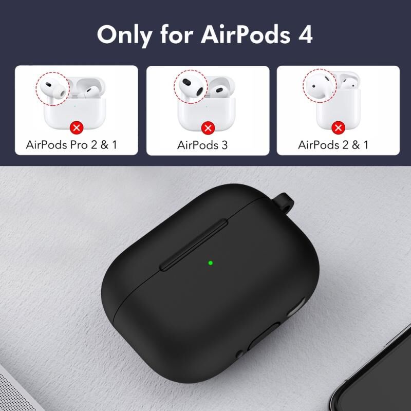 For Apple AirPods 4 2024 ENKAY Hat-Prince Thickened Silicone Case with Hook and Anti-lost Silicone Earbuds(Olive Green) (ENKAY)